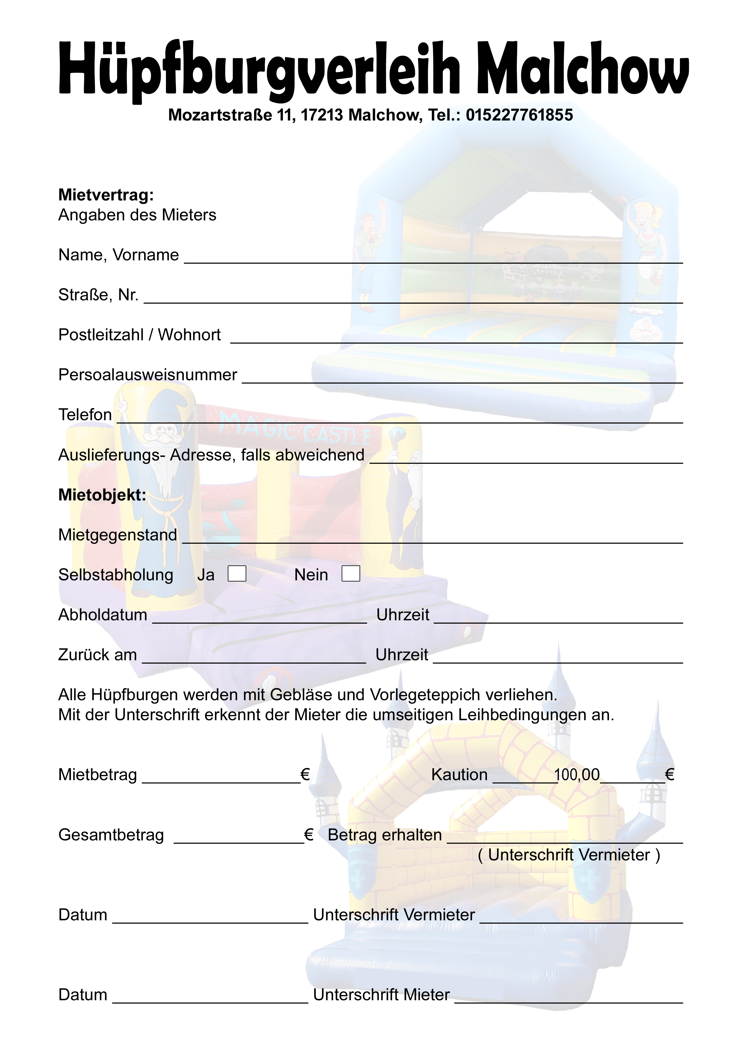 | 4x5 Hüpfburg ohne Rutsche / mit Rutsche | 80 Euro / 90 Euro Tagesmiete* |